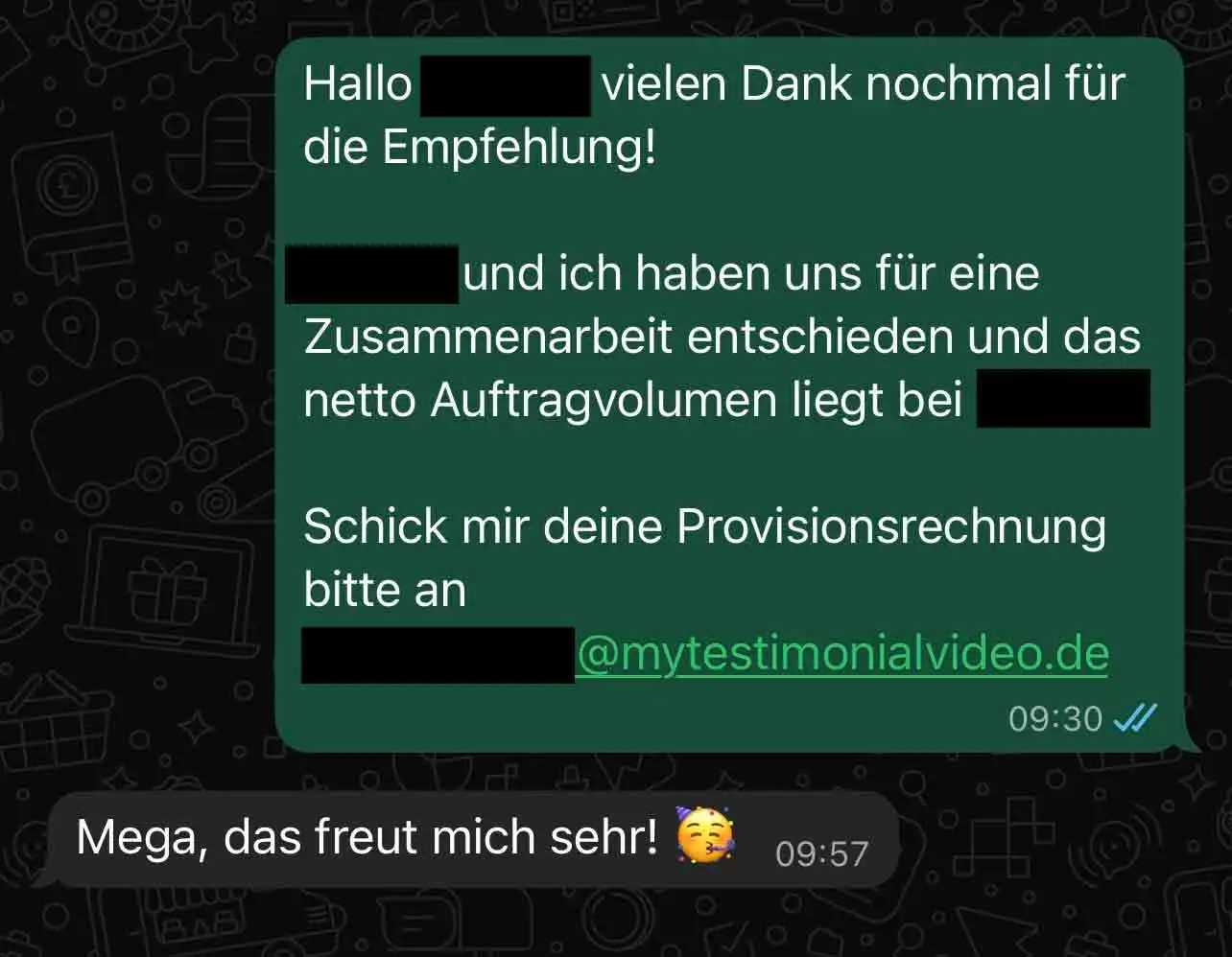Spreche mit deiner Empfehlung, erzähle von uns und den Vorteilen einer Zusammenarbeit.